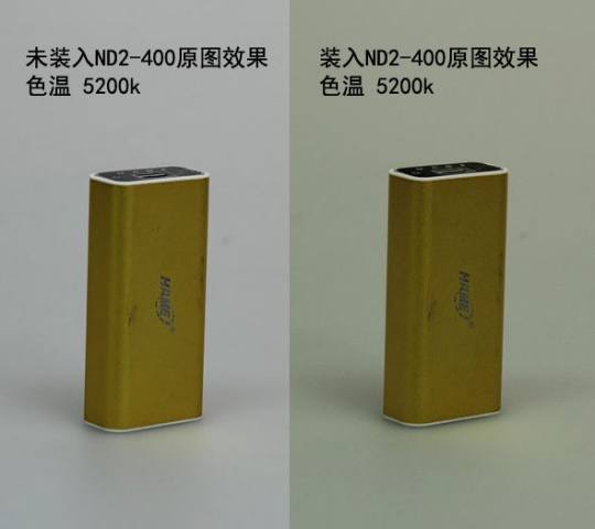 装上ND2-400后直接对比原图,我们可以看见这块ND2-400带有比较明显的绿色偏色。和原图相比,把滤镜的减光量调至最低时,曝光下降了约1.3EV。