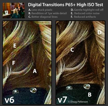 Phase One P65+ @ ISO3200 在 Capture One 6版本 (左边) 和7版本 (右)处理后