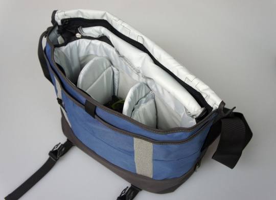 打开摄影包的掀盖,我们可以看到Vita系列中间有一个内胆,和两块间隔板。我们测试的这款M33型号的包包可以存放一台带普通镜头带手柄的全尺寸单反,外加一个长焦镜头和一个闪光灯。单就储物空间来说,Vita系列还是比较难超过一些专业的摄影包,但这款包主打的并非携带多镜头和高强度的安全保护,而是一包多用的灵活性。