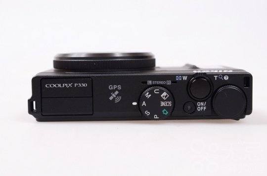 P330的机顶部分也设置了较多的按钮,最重要的就是拍摄模式拨盘、相机快门、电源开关和一个指令转盘,这个转盘相当于单反的全波轮一样,可以进行相对应拍摄菜单的参数调整。而机顶左侧是相机的内置闪光灯,这个闪光灯采用了内藏式设计,有效的减小了机身空间。机顶上带有GPS的字样,表明P330带有内置卫星定位功能,这个小功能也很实用,可以记录你拍摄过的地点。
