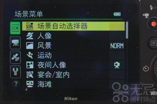 当把相机的拍摄模式调到场景拍摄时,P330的菜单就会变成场景调节状态了。相机内置了大约十来种拍摄场景,可以非常智能的拍摄照片。