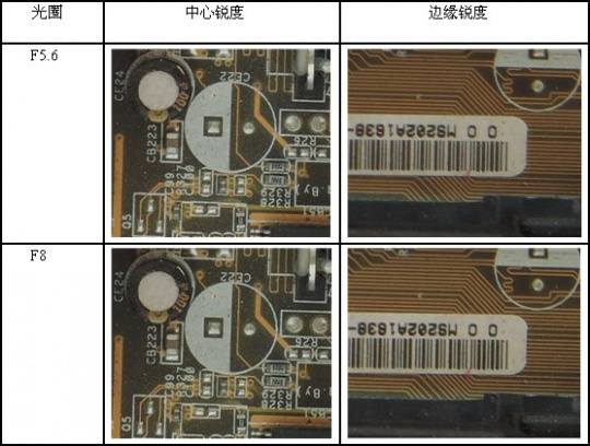 在长焦端下光圈的范围为F5.6-F8。在F5.6时中心锐度很高,并不亚于单反镜头的成像,但我们发现边缘成像比较一般,不太理想。缩小光圈也没有改善。至最小光圈F8也没有好转。