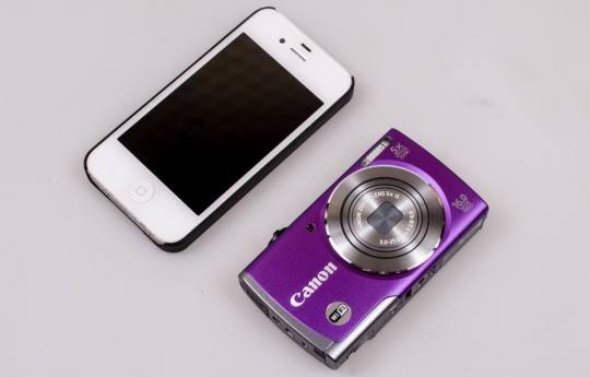 A3500 IS与iPhone 4S的大小对比,甚是小巧