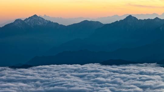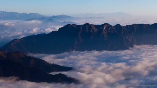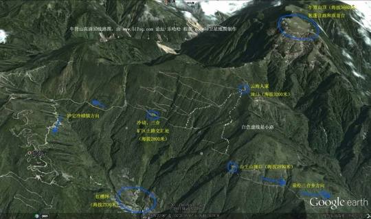 【牛背山】距成都市区直线距离180公里左右,紧靠二郎山南麓,位于雅安荥经县三合乡与甘孜泸定县冷碛镇交界位置,google、百度地图上标称“大矿山”,泸定方面负责牛背矿山,三合乡方面负责牛背山旅游,据说最新的分工是这样的。