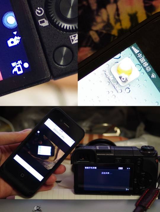 这个是NEX的新功能,用我的iphone4s试用了下,设备间的共享快了,我想了下,最大的好处是,可以copy照片发微博吧,别的也没啥意义,方法很简单,手机APP搜下sony nex下载安装,相机打开wifi,会有密码等提示,然后手机联接相机的wifi输入密码,打开APP软件,就可以轻松的共享相机内的图片了,如图所示:
