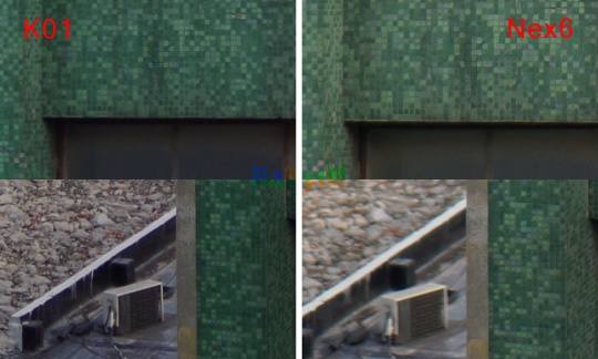 虽说K01配得是小公主,对E35有点不公平,但这里我主要是给个参照物,不是说谁好谁坏。从图看左边是用K01公主拍的,因为公主头是全副头,而且是只牛定,所以在全开光圈下中心和边缘成像基本一致,这个反观右图Nex6+E35全开,可见中心成像很好,边缘就不行了,但缩小光圈后画质就OK了,这个评测我觉得E35镜头素质有点像C家的EF28F1.8定,单从价格来说,我觉得E35算值的了,应该算个人文头,又小巧,颜色方面,因为数码时代机身和后期都会影响,所以对比也没啥意义了。