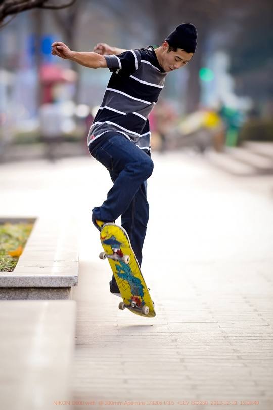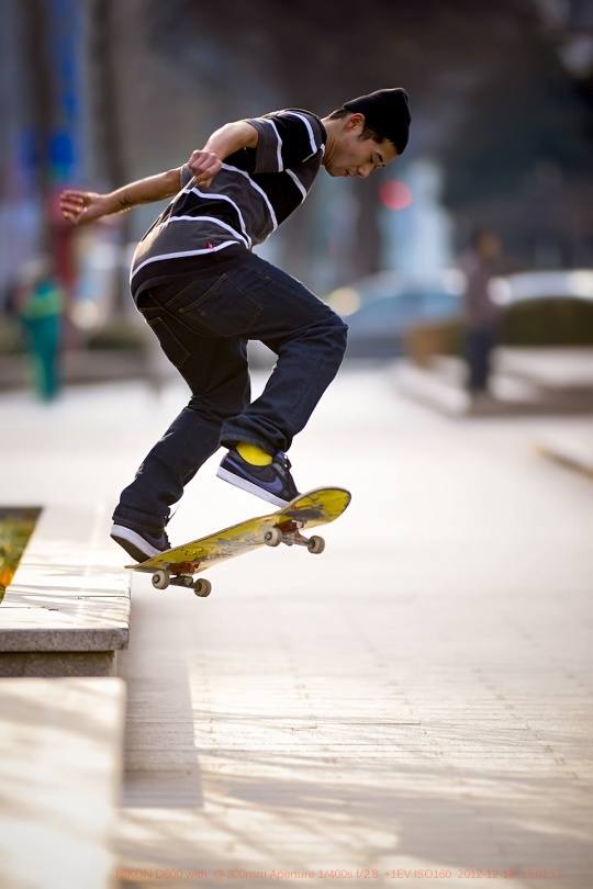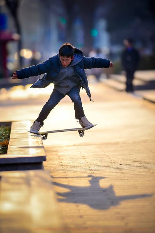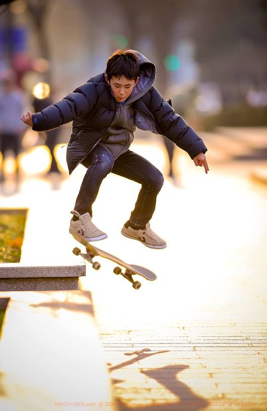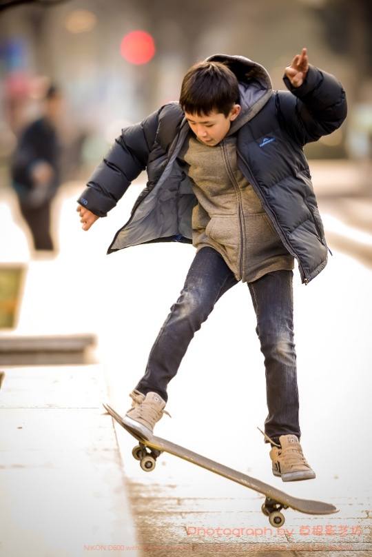 趁着还有一丝阳光,赶到了几个玩滑板的朋友那里。在拍摄滑板少年时,由于快速运动的拍摄方式,需要更快更好地进行画面的捕捉,于是,我更换了自己习惯的方式:如下