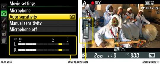 D600采用外部麦克风接口。如果连接ME-1立体声麦克风(另购),可明显减少机械噪音,记录清晰声音。此外,D600配有耳机接口,您可使用另购的立体声耳机有效地监控音频。可分30步微调音频水平。同时LCD显示屏上的声音水平指示灯在短片即时取景过程中提供音频水平的视觉确认,且麦克风可以用 20 个递增步骤精确控制其敏感度。