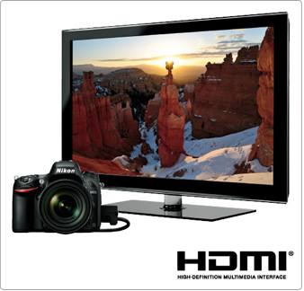 D600采用HDMI迷你针式接口。LCD显示屏和外接显示屏可同时显示。在短片即时取景中,可以与短片的拍摄大小(最大1,920 x 1,080*)相同的分辨率输出。在短片拍摄或短片即时取景中,可选择通过HDMI连接的设备中不显示LCD中显示的设置信息。当需要通过HDMI连接的大屏幕显示屏及时检查相机捕捉的影像时,这种功能对于查看整个画幅非常方便。此外,未压缩的短片即时取景数据在记录到SD记忆卡前,可直接记录到外接设备,以满足需要高品质的未压缩短片片段,以便在连接的设备上进行编辑的专业人士的需求。此外,如果相机连接到兼容HDMI-CEC的电视,使用电视摇控可进行相机的远程播放操作。