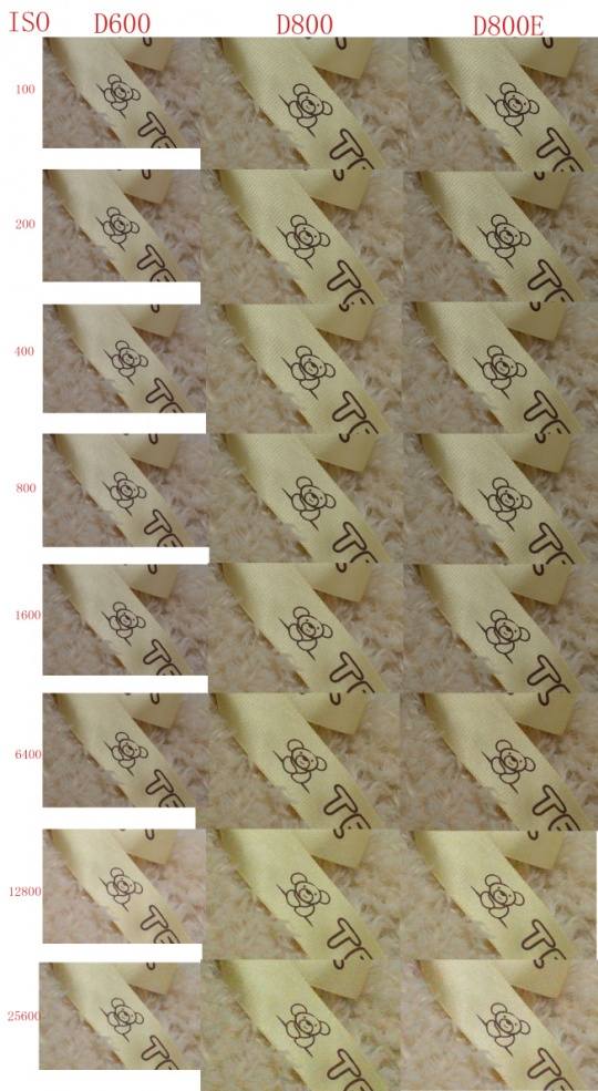 为了测试D600的画质,我把它和它的老大哥、135画幅相机的旗舰产品,风光摄影利器、3600万像素的D800和D800E做了画质的对比测试,测试条件:同样曝光值,ISO100-ISO25600,蔡司ZF50/1.4镜头,F8光圈,RAW格式,SD模式,机内默认锐化都为3档,机内高ISO降噪关闭、长时间降噪关闭,后期NX2转换为JPEG格式。
