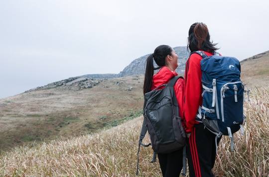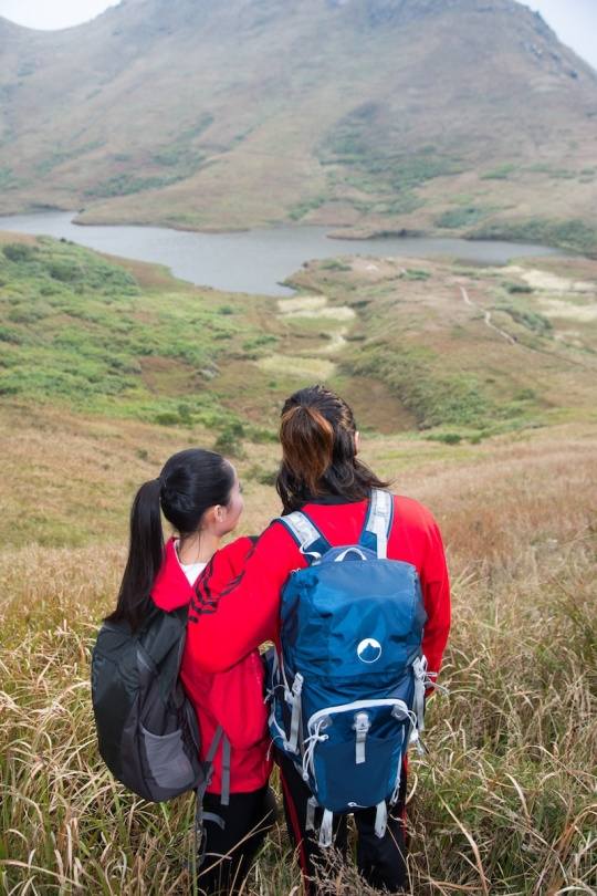 户外拍摄必定要爬山,就是为户外设计双肩背包,因此的背负系统比较出色,图为创作团团友们集体爬山,和的基本造型一样。