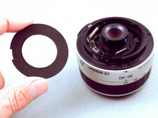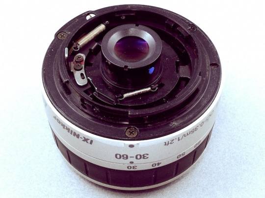 实际上我的IX Nikkor 30-60/4-5.6镜头已经将镜头后部的电子触点拆除了,这样一来就可以安装在135画幅单反相机上了。