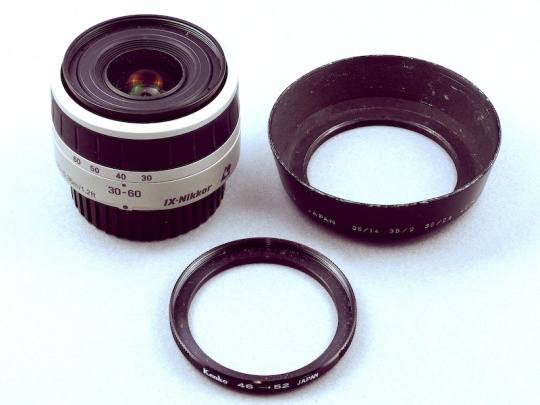 IX Nikkor 30-60/4-5.6于1998年9月发售,等效焦距为45-90mm。虽然采用尼康F卡口但是不能安装在全画幅相机上。镜头上没有光圈环,转动镜头前端可以进行手动对焦。