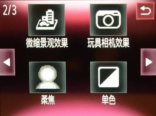 最重要的拍摄模式选择界面,大图标让触摸很方便,Powershot N提供的效果并不是特别的多。