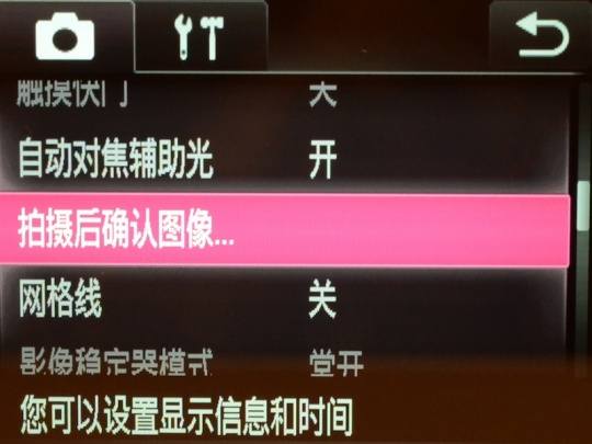 与其他佳能Powershot系列很相似的拍摄界面,不过这里要指出一点不足的就是这个节目的文字都是英文状态,这对于入门级别用户来讲,或者是对英语识别吃力者是有一定影响的,毕竟产品还是要在中国卖,其他的文字为中文,这里也可以标注成中文。