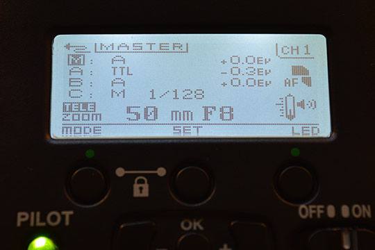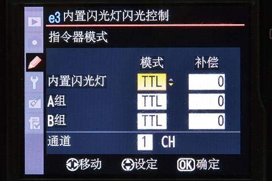除了以上三种闪光模式,这款闪光灯还具备完整的主控功能(支持尼康CLS主控单元),当设为主控模式(MASTER)时,可以将从属单元分成三组,每组均可调节闪光模式(TTL/M/A/取消闪光)和闪光输出补偿。此外按SET按钮可以对频道进行调节(1-4频道)。