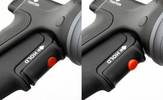 GH-300T的枪式手柄也可以根据需要,以45度分档做360度的任意位置八个方向旋转,使之处在更加顺手的位置上。调整时握在枪型手柄上以食、中两指将灰色环拉出即可旋转,操作上迅速、可靠。