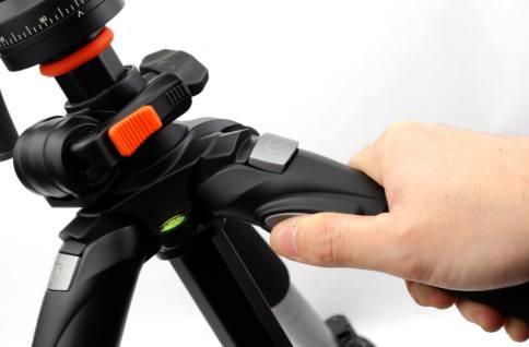 脚管根部的角度调节按钮在我用过的三脚架中是最好用的,不需要进行复位的操作。