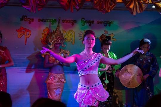 景洪,澜沧江游船上的民族歌舞演出