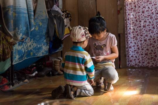 在傣家寨子午餐,主人家的两个孩子