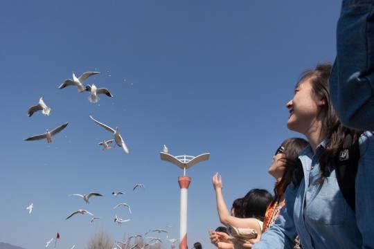 滇池边喂海鸥