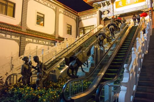 昆明,七彩云南,这是一个购物休闲的地方,一组茶马古道的雕塑留下永远的记忆