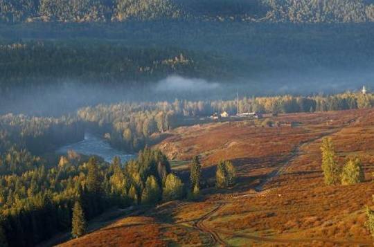 在雾气中拍摄风光,树林和雾气的层次让画面层峦叠嶂,相机可以细腻地表现出各种色彩与明暗之间的关系。