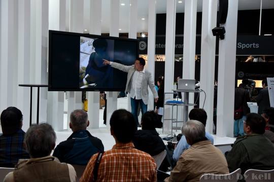 佳能的展示大厅里,2位美女大师在给观众们讲解