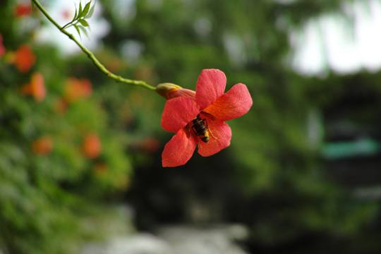 1.黄脚胡蜂在凌霄花中(压缩到1600×1067)(感谢 wenxiong34d 对蜂名的矫正)