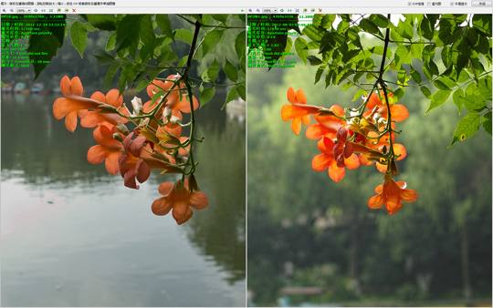 3.依旧凌霄花(1600×1067)亮部、暗部光比较大,噪点很轻。