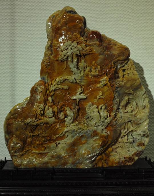 然后呢,无意中闯入了一个展览,是福建人搞的寿山石雕,拍了很多,放一张吧,ISO400的片子,毕竟是玉石呀,太油润了(片子左右有裁切)。