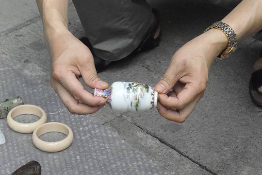 ISO400,1:1裁切。卖家要价400元,买家说250元;卖家说这是清康熙年物品,卖家说康熙年的东西没这么新……买家的手表倒是金灿灿的哩。