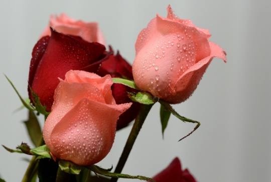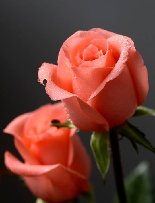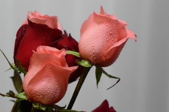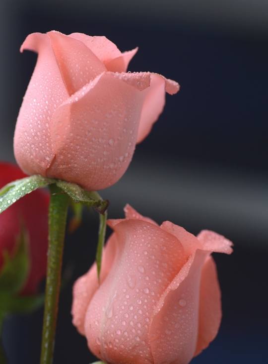 这两天阴雨,外景不给力。晚上特地买了几枝玫瑰在灯光下拍。请对比高感的两片: