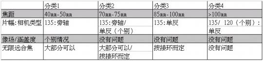 备注:个别除了70mm大电影用的摄影头外,一般电影镜头广角类镜头因为采用反焦距设计(Retro Focus),后组玻璃贴原镜桶后部,较难更改接环使用到定格相机上。另,不同的短焦距镜头有可能通过接环有效使用到4/3类数码或半格相机上。