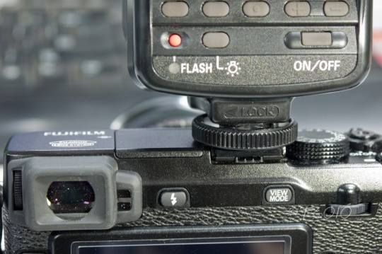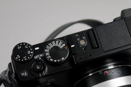 由于热靴与快门转盘距离过近,安上闪光灯后有点挡快门转盘,不过好在影响不大,可以在LCD上看快门速度。因为我用闪光灯的时候习惯用M档曝光,所以此时快门转盘的使用频率很高。富士的快门转盘可是真正的物理转盘,不会因为开闪光而自动将高速快门调整到1/180以下,因此会拍出一半亮一半暗的片子,非常有趣,明显看出是纵走幕帘快门,哈哈。