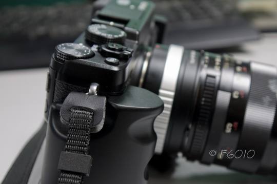 机器的高度正合适,几个手指都有地方放,持握的感觉虽然比不上奶昔榴,不过也比GF3强一些。使用原厂18-55基本不需要手柄,可要是转接最好要加上手柄,包括金广、100ZF,甚至是135DC转接以后都有不错的持握感。而且我没有买原厂的,倒不是价格原因,主要是原厂手柄无法打开电池盖,副厂的倒是可以、而且是全铝的,手感真不错。