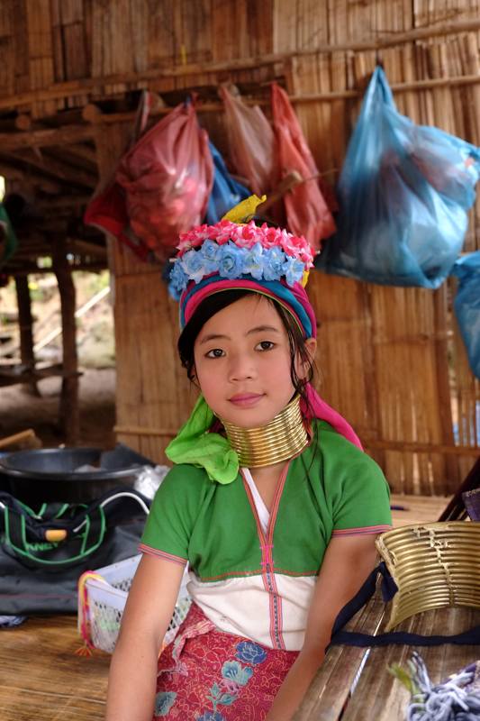 泰国北部与缅甸边界的一个少数民族喀伦族的一支巴东族所组成的长颈族是这一地区的特色村落,你只能从湄宏顺镇看到。长颈族女性从出生起就要在颈部带上沉重的铜圈,相传在古代这样可以保护柔弱的女性不被野兽咬伤颈部,习俗也逐渐延续了下来,男孩则不用佩戴。
