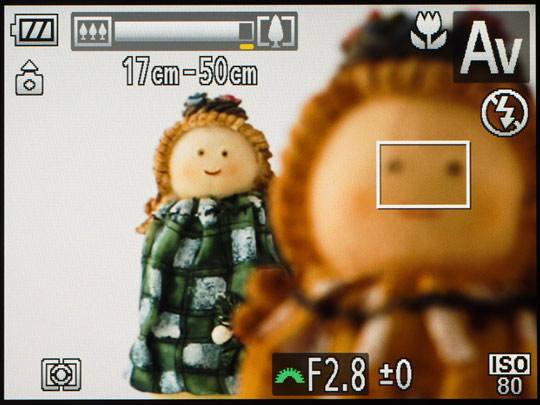 微距模式下最近对焦距离从镜头前缘开始,广角端1cm、远摄端40cm。通过逐级变焦功能可以轻松实现前景虚化和背景虚化效果。对于喜爱拍摄微距的人们来说是个不错的性能,不过取消了可翻转式液晶屏实在有些遗憾。佳能表示,采用固定式液晶屏是为了实现轻小便携的特性,此外也将液晶屏从G12的46.1万像素2.8英寸提升至92.2万像素3.0英寸。只能说是世事无完美吧。