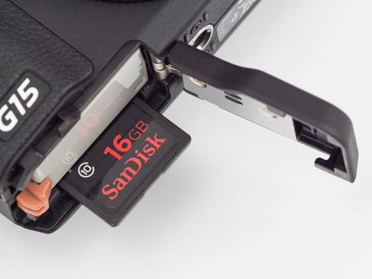 G15支持SDXC/SDHC/SD存储卡,可以同时记录RAW或RAW+JPEG格式的图片文件。