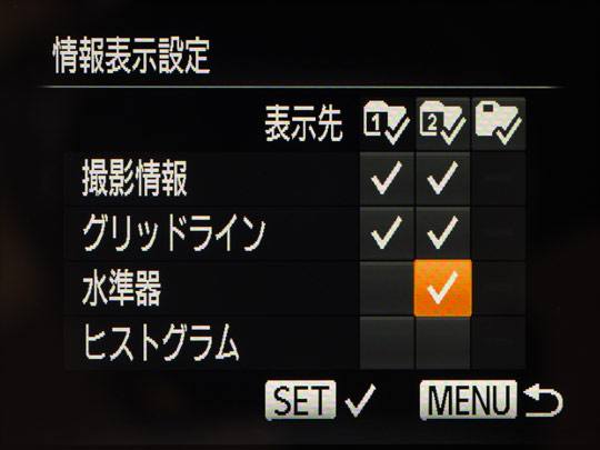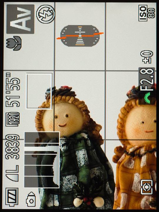 G15相比上代产品加入了不少新功能,如全新双轴电子水平仪,不仅能提示左右的水平,还能提示前后方向(仰视角度)的倾斜。在拍摄风景、建筑物题材的构图时比仅显示左右水平的G12更为方便。