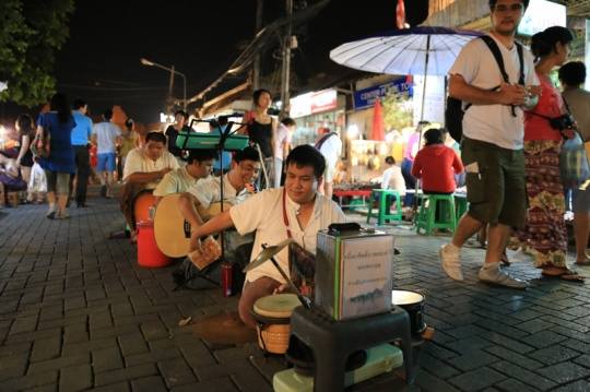 清迈的周末市场很热闹 瞎子乐队