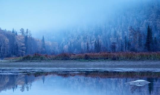 早晨的禾木村被薄雾笼盖,丰富的层次和色彩让人忍不住静静的看着她。
