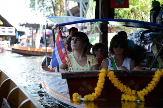 11月1日,第三天,也是旅行活动最后一天(2号早晨就搭乘飞机回北京),上午安排为丹嫩沙多水上集市,该集市由纵横交错的水道组成,卖货商贩或在竹楼边上,或划船兜售,游客乘船在当中交易。该集市热闹时候,船只可谓“摩肩接踵”,经常发生堵塞。