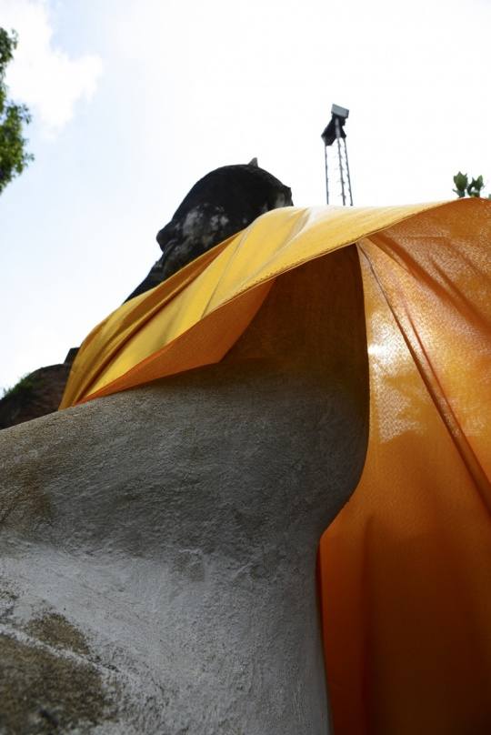 这座寺庙除了供有巨大金佛,寺庙外基本可以视为“泰国版圆明园”,遗址内砖墙已经长满青苔,不少佛像已经残缺不全。拍摄时候恰好赶上晚霞前,傍晚阳光非常柔和。 对D600的测光和白平衡是一次考验。
