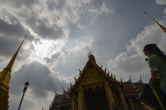 下午,我们游览的是曼谷著名景点玉佛寺!该寺庙建于1784年,是泰国大王宫的一部分,面积约占大王宫的1/4,玉佛寺主要是泰国王族供奉玉佛像和举行宗教仪式的场所。(1946年拉玛八世突遭暗杀后,现任拉玛九世即位(50年加冕)。此前几位国王住在大王宫,九世开始不住在王宫里)