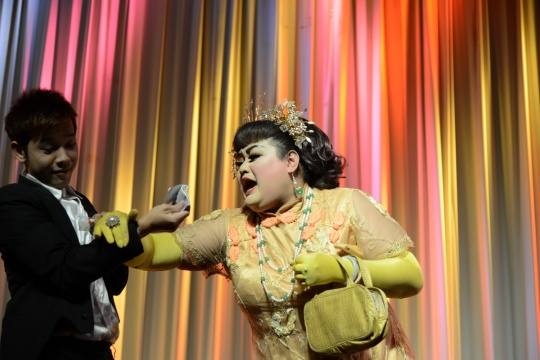 人妖表演团团长 中年激素作用身材走样 可以演丑角