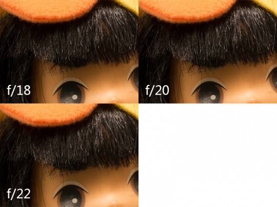 22mm这只镜头在F2-F4的表现比较一般,但是从F5.6-F11期间锐度较高,看发丝丝丝展现。从F16开始下降,后面表现平平。