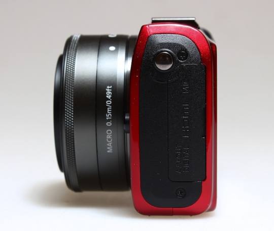 上图中我们不难看出EOS M确实外表比较简约,这个角度只能看到三个功能:镜头释放按钮、标准热靴和快门按钮。