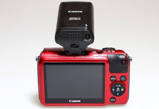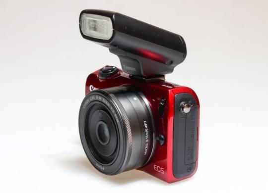 EOS M机身本身没有配置闪光灯,采用的是外置闪光灯系统,在套机中,佳能会附送一款90EX小外置灯。