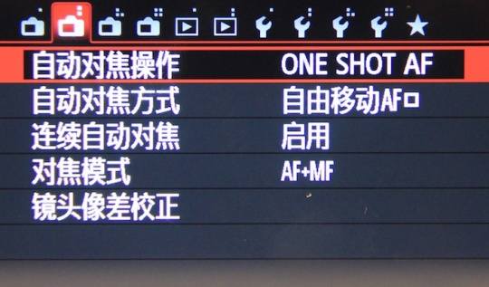 对焦操作选项